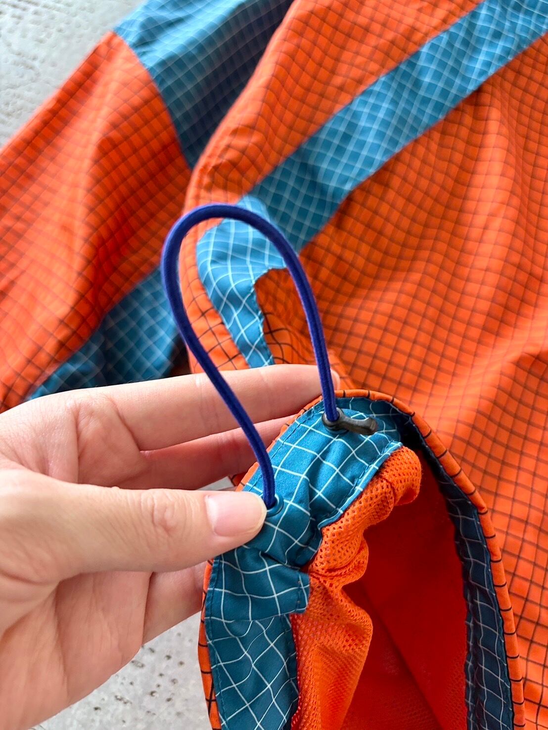 ツートンの格子柄ナイロン。