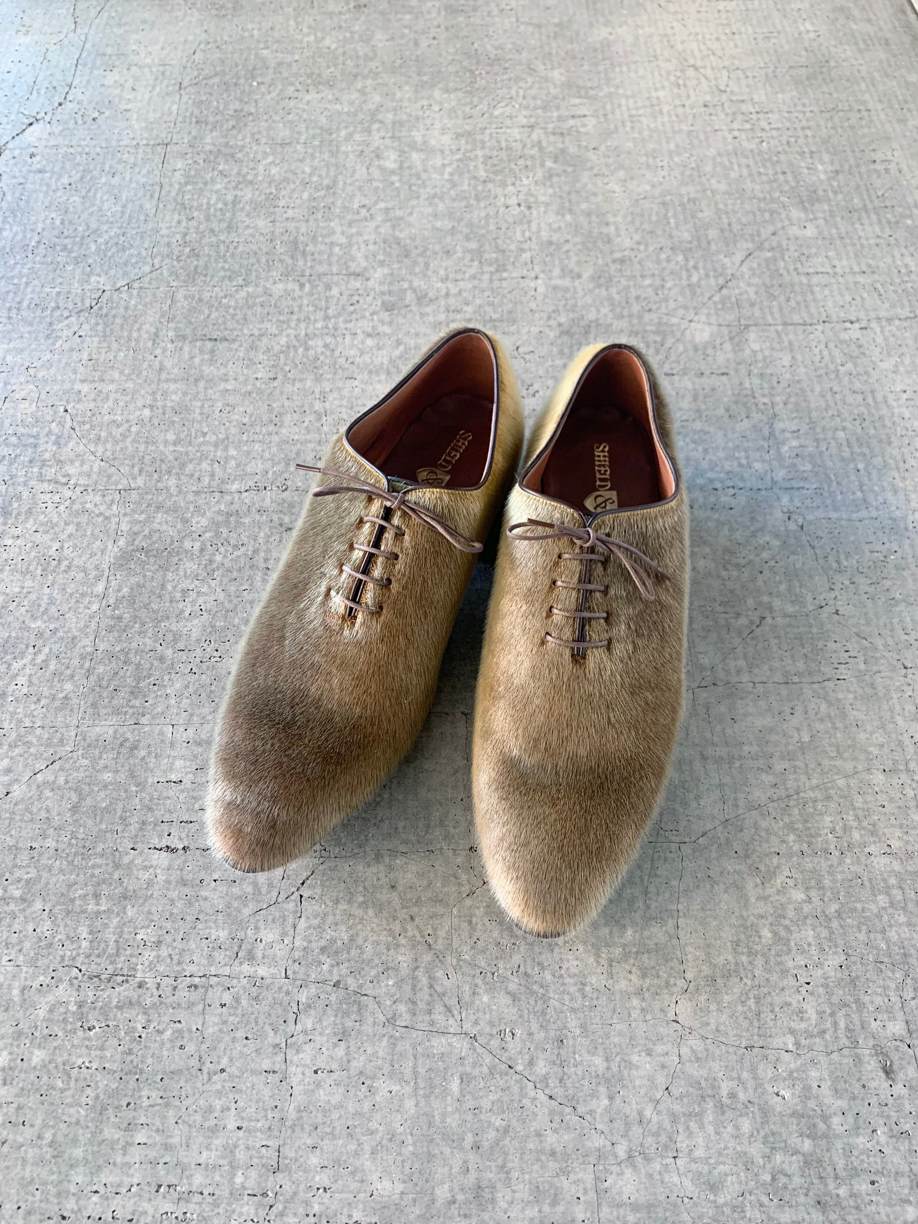 リアルファーを使った、90s~ハンドメイドレザーシューズ。