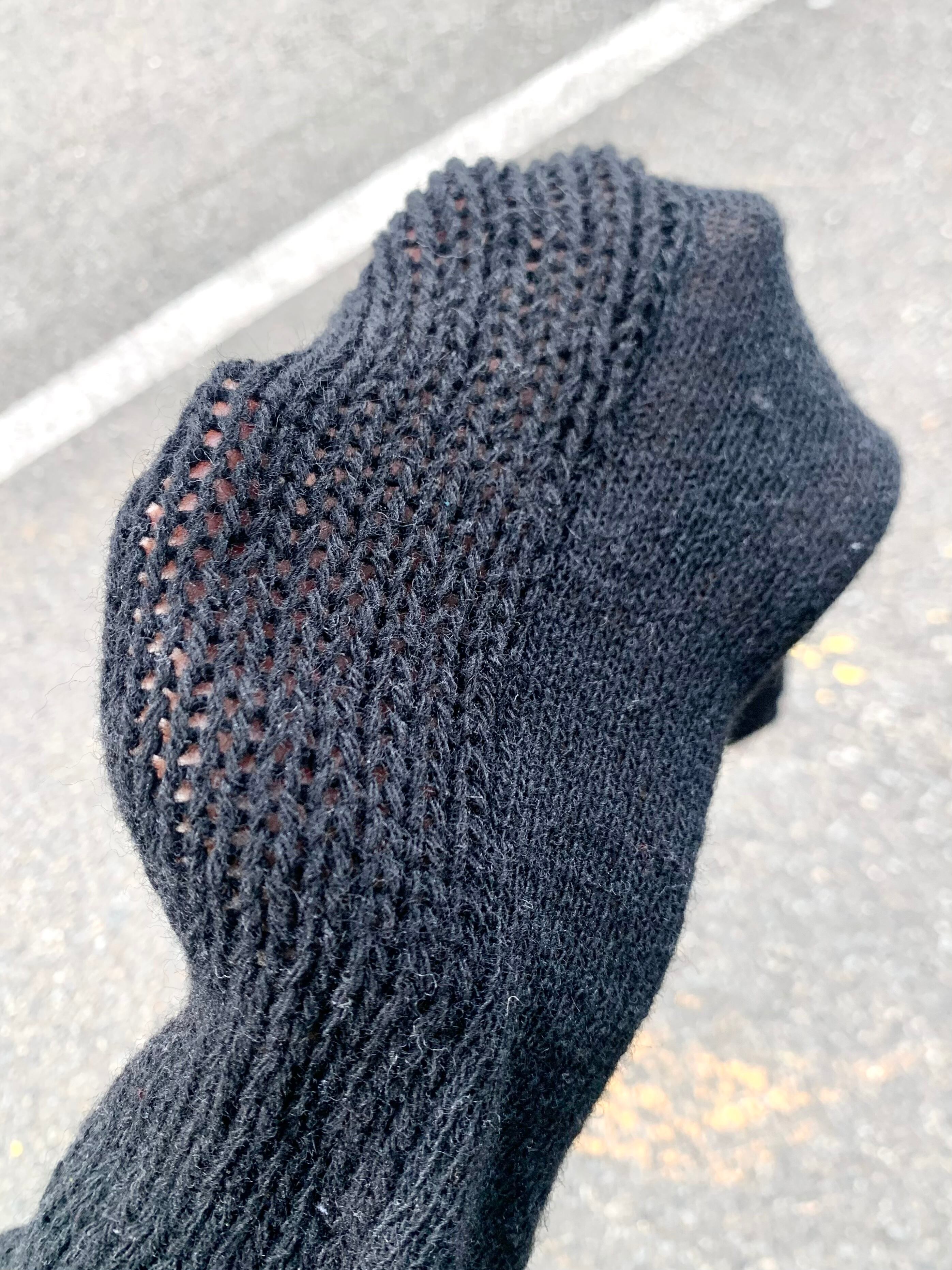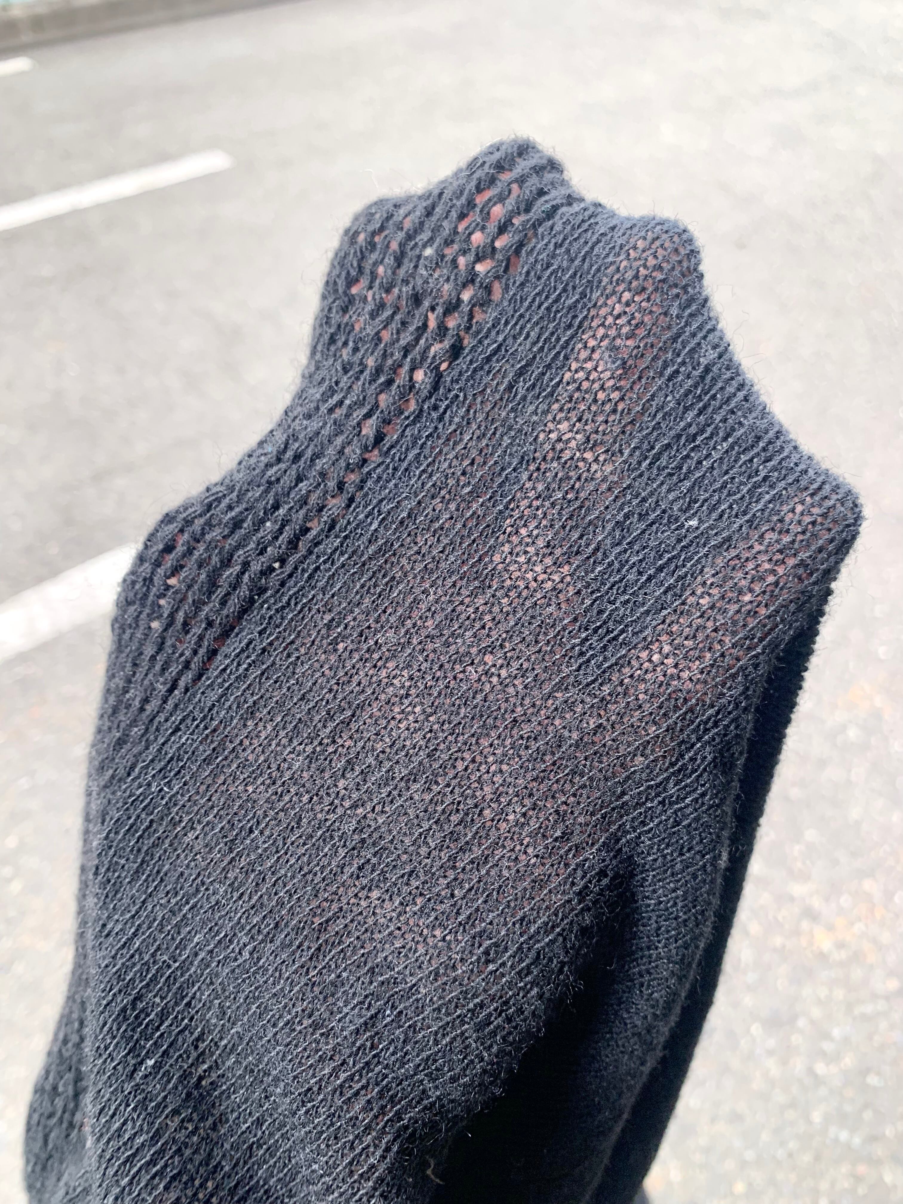 一見シンプルですが、前後で編み地が切り替わってます(前ローゲージ/後ハイゲージ)。そしてラグラン。